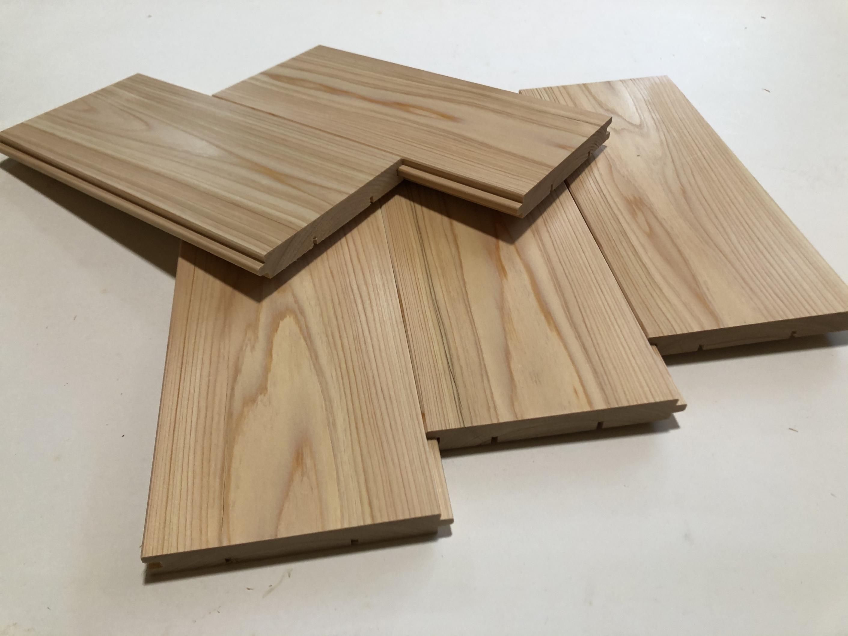 目透かし加工は雄実が長くなっているため隙間ができます。主に壁、天井に使用されております。